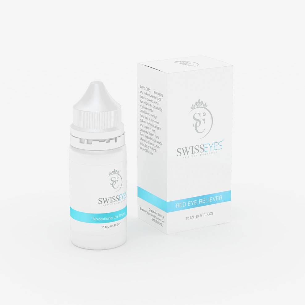 Swiss Eyes unika formula avlägsnar röda fläckar i ögonen effektivt samt motverkar irritation och sveda. Med sin smörjande effekt ger den dina ögon en skön känsla. Den unika kombinationen av ingredienser samverkar och ger precis samma effekt som tidigare versioner av ögondroppar innehållande Naphazoline Hydrochloride utan den svidande känslan.